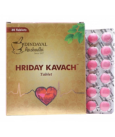 Dindayal Aushadhi Hriday Kavach Tablet is a potent Cardiac tonic. Manages blood pressure also act as a antioxidant & anti-inflammatory.Antihyperlipidemic, It helps improve cardiovascular health.Prote..