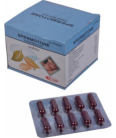 Spermotone Capsules are herbal medicine for male fertility enhancement. Spermotone is the best fertility-enhancing supplement that helps to increase sperm count and quality. Spermotone Capsules Specially formulated to improve semen quantity, Spermotone Capsules give excellent results. Spermotone capsules help in improving motility, morphology and also aid in reducing Semen Abnormalities. These Capsules enhance sperm production in males because of its high content of concentrated antioxidants which help in fighting oxidative stressors Spermotone capsule is useful for male infertility due to the following reasons: Sperm metabolite deficiency, Myosin heavy chain synthesis disorder, Leydig cell dysfunction, Testicular germ cell failure, Spermatogenic arrest, Sperm transport disorder.