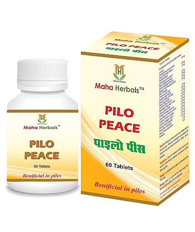 Maha Herbal Pilo Peace. Benefits: Reduces irritation and itching. Helps reduce the pile mass. Relieves constipation associated with piles and ensures smooth evacuation. Helps control bleeding.Ind..