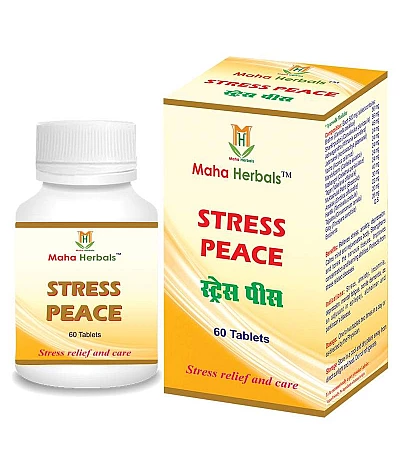Maha Herbal Stress Peace. Benefits: Relieves stress, anxiety, depression. Calms mind and rejuvenates body. Strengthens and tones the nervous tissues. Improves concentration and learning abilities..