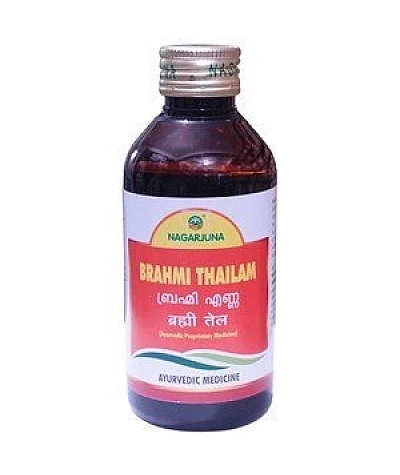 The Nagarjuna Brahmi Thailam is a rejuvenating body massage oil for men and women. It ensures healthy skin, deep sleep and a peaceful mind. The thailam contains 6 Ayurvedic herbs such as brahmi, shankhapushpi, bhallataka, etc., which enhances memory power and concentration.