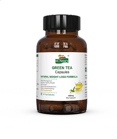 Dr. Patkar's Green Tea• Natural fat burner.• Reduces the stubborn belly fat so helps in inch loss.• Contains the goodness of 5-6 cups of green tea in just one capsule.• Suppress the excess appetite.• ..