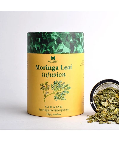 Moringa Leaf Infusion is 100% dried moringa leaves infusion, subtle in taste and fragrance, and untouched by anything artificial - an ayurvedic way of detoxifying the body. This infusion helps balance..