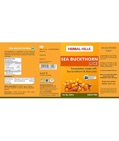 Herbal Hills Sea Buckthorn. This health juice is a combination of Sea Buckthorn and aloe vera juice. Sea Buckthorn is a rich source of vitamins, minerals and various beneficial plant compou..