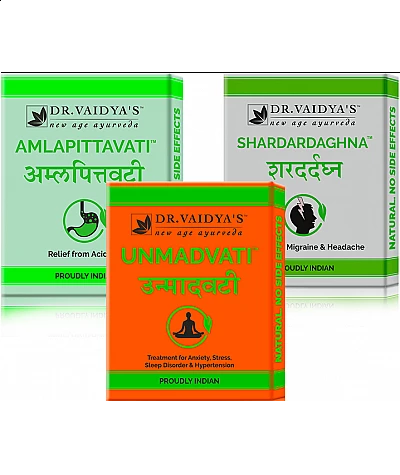 1)Dr Vaidya's - Migraine Pack (Unmadvati - 72 Pills, Shardardaghna - 72 Pills and Amlapittavati - 72 Pills)