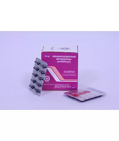 Kottakkal annabhedisinduram capsule is known to act as a potent antidiarrheal agent in the treatment of acute diarrhea. It also helps in improving appetite when used with other medicines. The bifidogenic activity of this medicine is noteworthy. Kottakkal annabhedisinduram capsules are believed to promote the growth and repair of intestinal epithelial cells that get damaged because of infection or inflammation. These capsules mainly contain jivanti (hemidesmus indicus), chebulic myrobalan (terminalia chebula), vidhara (pueraria tuberosa), shyonaka (purified ashwagandha root extract) and Ananta (hemidesmus indicus).