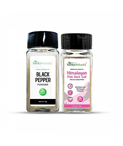 Salt & Pepper ComboHimalayan pink rock salt and black pepper create a seasoning blend that offers a balance of flavors. The saltiness of the pink salt enhances the taste of the dish, while the pun..
